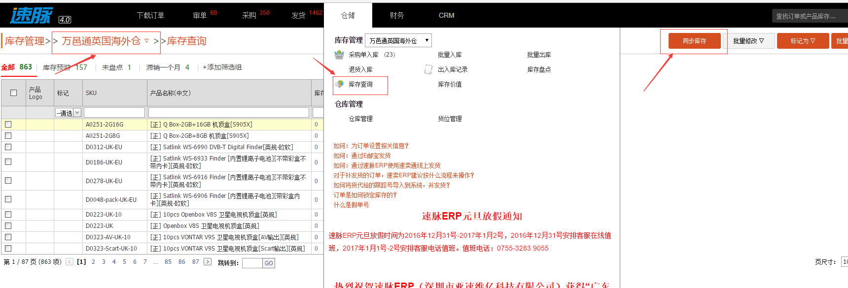 速脉ERP和万邑通的第三方仓库对接成功啦!