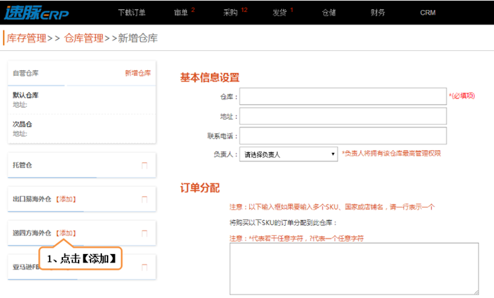 步骤一:进入【仓库管理】,设置万邑通仓库授权