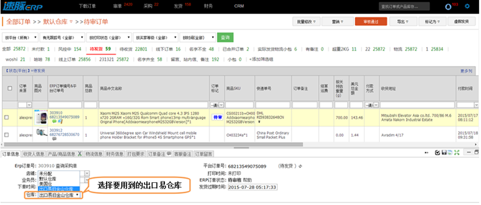步骤三:将订单的仓库信息修改为万邑通仓库